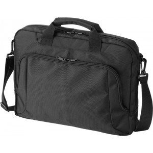 Basic laptop bag that fits most 15.4″ laptops, the bag has a front pocket with ‘hook & loop’ closure an adjustable shoulder strap and top carry handle. 600D of Polyester.