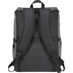 15.6″ laptop backpack made from durable material with dedicated padded tablet sleeve. Features a spacious main and large secondary compartment, front compartment with organisational panel, zipped pocket and key fob. Padded back with moisture-wicking air mesh and padded shoulder straps. 600D of Polyester Dobby.