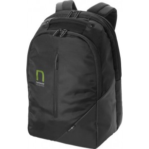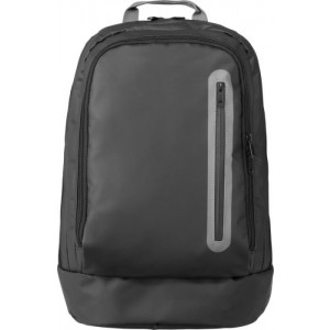 Exclusive design waterresistant backpack with zippered main compartment with laptop compartment will fit most 15,4″ laptops. Zippered midd compartment with slash pocket for small accessoires like phone. Vertical zippered front pocket. Adjustable padded shoulder straps and reinforced top carry handle. Tarpaulin.