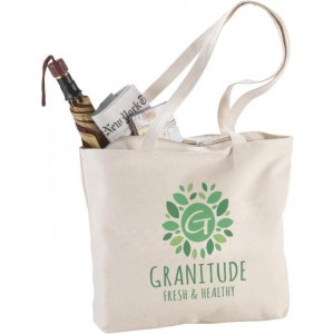 Clean design gives this tote large imprint areas and is a great option for meetings, conventions and tradeshows. Also, a perfect alternative to plastic bags. Zippered main compartment. Handle drop height 31.5 cm. Cotton, 340 g/m2.