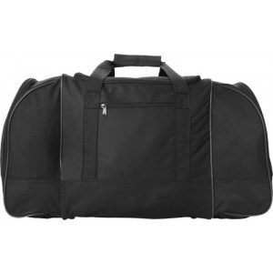 Exclusive design water resistant large travelbag with zippered main compartment. Zippered front pocket. Top carry handle with padded hook & loop closure. Carry handles on both sides. Removable and adjustable shoulder strap. Tarpaulin.