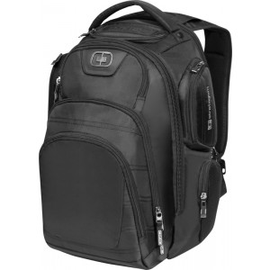 Stratagem 17″ laptop backpack. Exclusive design laptop bag with dedicated fleece lined top loading laptop compartment fits most 17″ laptops, integrated foam panels keep your electronics and other valuables protected, padded iPad/tablet/e-reader pocket. Padded mouse/digital camera pocket. Two zippered side utility pockets, dual side water bottle/accessory holders, deluxe organization panel with zippered stash pocket. 420D Polyester. 420D of Polyester.