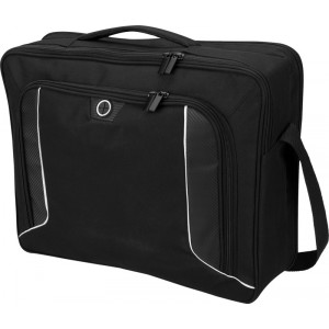 This exclusively designed, security-friendly briefcase includes integrated features to keep you powered up while traveling. The TSA-Friendly laptop compartment zips down to lay flat on the X-ray belt getting you through TSA checkpoints faster and more securely. The zippered center compartment includes dedicated power bank pocket, mesh storage pockets for cables and accessories and extra room for folders and files. The smart pass-through port in the front wall allows your cables to connect from the center compartment, where your power source is located, to the front organizer pocket to charge your tablet or phone while on the go. 600D of Polyester.