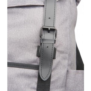Vinyl straps on front with easy to fasten opening clips give access to wide opening of main compartment with padded 16” laptop sleeve. Extra side and front pocket on the outside of the backpack. Back straps with air mesh on underside give comfort while wearing. There may be minor variations in the colour of the actual product due to the nature of the fabric dyes, weaves, and printing. 600D of Polyester.