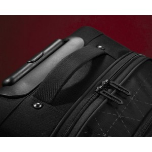 Vapor 21″ laptop trolley. The Vapor 21″ laptop rolling upright features a unique padded laptop sleeve that can be accessed from the top front panel. Lower front pocket has lined iPad/tablet pocket. Also features everything you would expect in a piece of luggage like corner mounted inline-skate wheels, telescoping handle, main compartment with tie-down straps and mesh divider for your laundry. Top front pocket has organization for all of your accessories. Bag has side, bottom and top grab handles to make it easier to carry in tight spaces. 210D Nylon, 600D Polyester, 150D Polyester. 210D of Nylon.