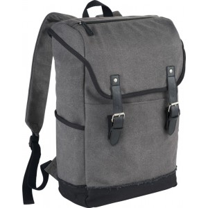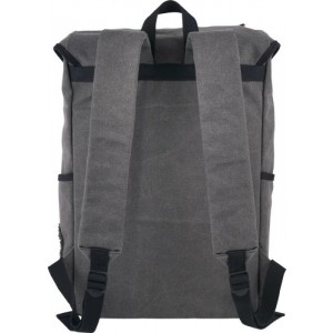 The Field & Co.® Hudson collection has a gritty, urban look and feel with a modern functional design. Spacious open main compartment snaps shut with custom Field & Co. rivets. Exterior slash pockets allow you to store your water bottle or anything else you need quick access to. Black and white micro gingham print on the interior adds a stylish detail while the padded laptop compartment will keep your 15.6″ laptop safe. Interior padded tablet pocket will fit your iPad, Surface, or other tablet device. Unique Field & Co. branding details like the exterior cotton patch and interior label featuring the inspiration behind the collection. Wide cotton backpack straps keeps it comfortable. Canvas, 542 g/m2.