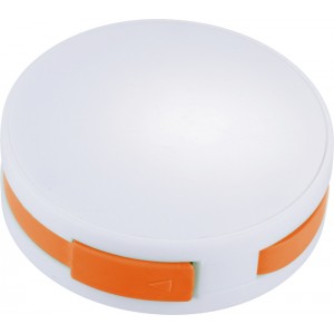 Round 4-port USB hub. 4 port round USB hub with input port inserted inside. Packed in a joined bubble bag. Plastic. Plastic.