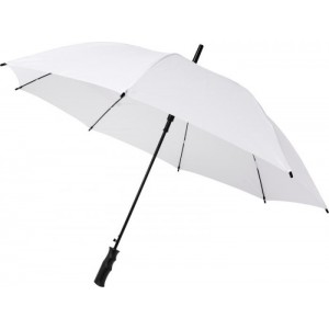 Automatically opening umbrella with a polyester canopy. It has a sturdy metal shaft, a patented high quality full fiberglass frame, offering maximum flexibility in windy conditions. Straight plastic handle, tips and top. Available in a wide variety of contemporary colours and has a large decoration area. Polyester.