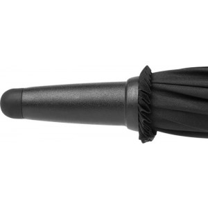 Automatic opening umbrella offering more rain protection but only 83 cm long. Sturdy metal shaft, high quality full fiberglass frame offering maximum flexibility in windy conditions. Ergonomic rubberized handle with integrated push button in grey metallic finishing. A soft-touch top offering an anti-slip function. Features a 4 cm width closure strap in a matching colour of expendable part. Pongee Polyester.