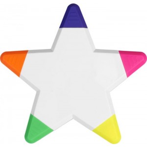 Five brightly coloured highlighters in a star shape. PP Plastic.