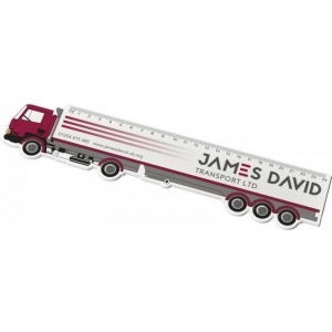 Lorry shaped solid plastic ruler with both markings in inches and centimetres. High impact GPPS plastic.