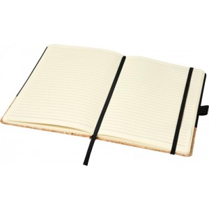 Stylish A5-size hard cover notebook with PU lower part. Features a matching colour elastic closure, ribbon marker, 80 sheets (80gsm) cream colour lined paper and an expandable pocket at the back to keep small notes. Packed in a black box. Cork, PU Plastic.