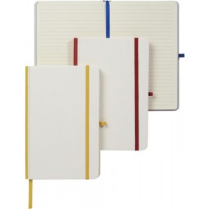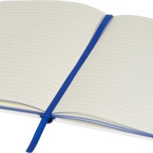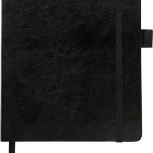 A5 size soft cover PU leather notebook with matching colour elastic closure and ribbon marker. Available in the following colours: Black, Brown, Navy. 80 gsm, 96 sheets of cream coloured lined paper. Packed in a sleeve. PU Plastic.