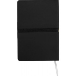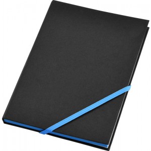 This smartly designed notebook (A5 reference) offers a distinctively different decoration opportunity thanks to a sturdy, spine-connected elastic band with a dedicated decoration area. Features 96 lined sheets (80gm), packed in a Journal books gift sleeve. Thermo PU Plastic.