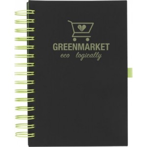 A new addition to our popular Notebook range. This versatile new notebook has a smooth black PU cover, with brightly coloured chunky wire and matching pen loop. Includes 160 sheets (70g/m2) cream lined paper. PU Plastic, Metal.