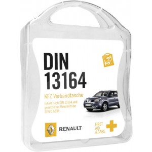 Ideal DIN approved first aid kit for every car. A well stocked first aid kit is a handy thing to have to be prepared for injuries and emergencies. Content: 3 first aid dressings 8 m x 10 cm, 1 first aid dressing 10 m x 12 cm, 2 burn dressings 40 x 60 cm, 1 burn dressing 60 x 80 cm, 3 wound compress, 2 elastic bandages 4 m x 6 cm, 3 elastic bandages 4 m x 8 cm, 1 scissor, 1 first aid guide, 1 tape roll, 8 adhesive bandages, 2 pair of disposable gloves, 2 triangular bandages, 1 first aid blanket, 2 skin cleansing swabs, 2 finger plasters 70 x 40 mm, 2 finger plasters 120 x 20 mm, 2 plasters 72 x 19 mm. All of the first aid and care products within the kit meet all applicable EU regulations. Price includes full colour print. Plastic.