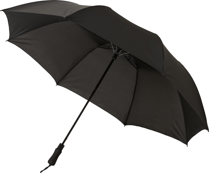 30” vented umbrella with a windproof system for maximum frame flexibility in stormy conditions. Equipped with fibreglass and ribs. The overlapping ventilation cover construction regulates the pressure in strong gusts. Includes carry case with shoulder strap. Pongee Polyester.