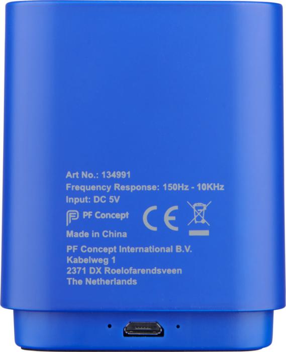 Woven Fabric Bluetooth® Speaker features exceptional sound and an on trend style. The body of the speaker is wrapped with a woven fabric cloth finish. The speaker’s 5-watt driver packs a punch while the built-in music control and microphone allows you to control the music and hold a conference call from any location without touching your phone. Bluetooth® working range is 10 metres. Includes Micro USB to USB charging cable. Playback time at max volume is 2 hours and charging time is up to 2 hours. ABS Plastic.