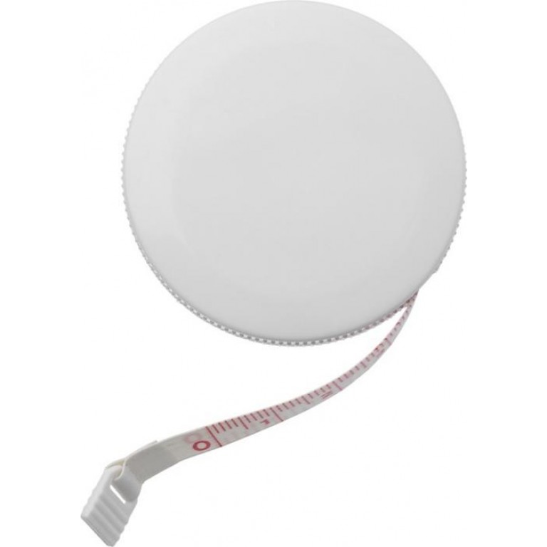 1 meter retractable, locking tape measure showing centimeters and inches. Slide-locking button locks tape in place. Rubber grip. Metal split-ring key chain. ABS Plastic.