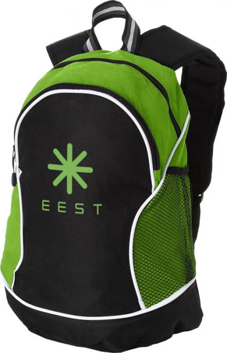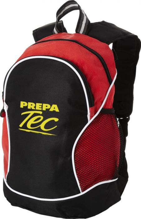 Main zippered compartment. Front zippered pocket with interior organisation. Side mesh pocket. Padded, adjustable shoulder straps. 600D of Polyester, Non-woven polypropylene, 80 g/m2.