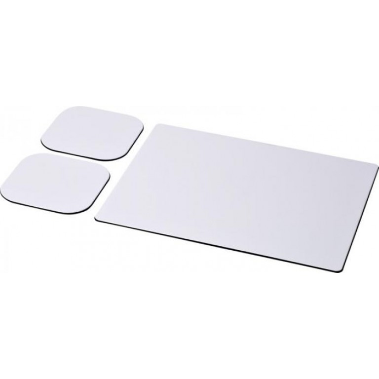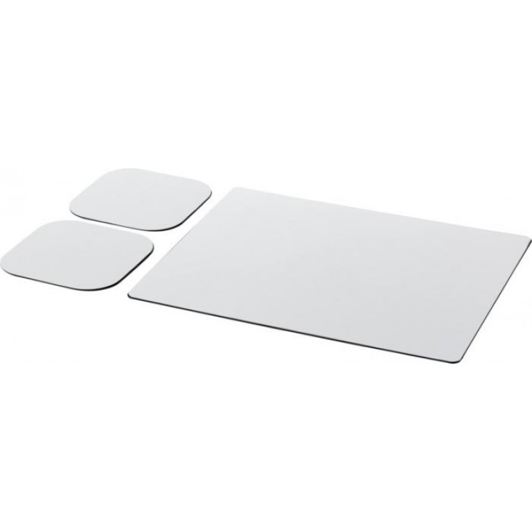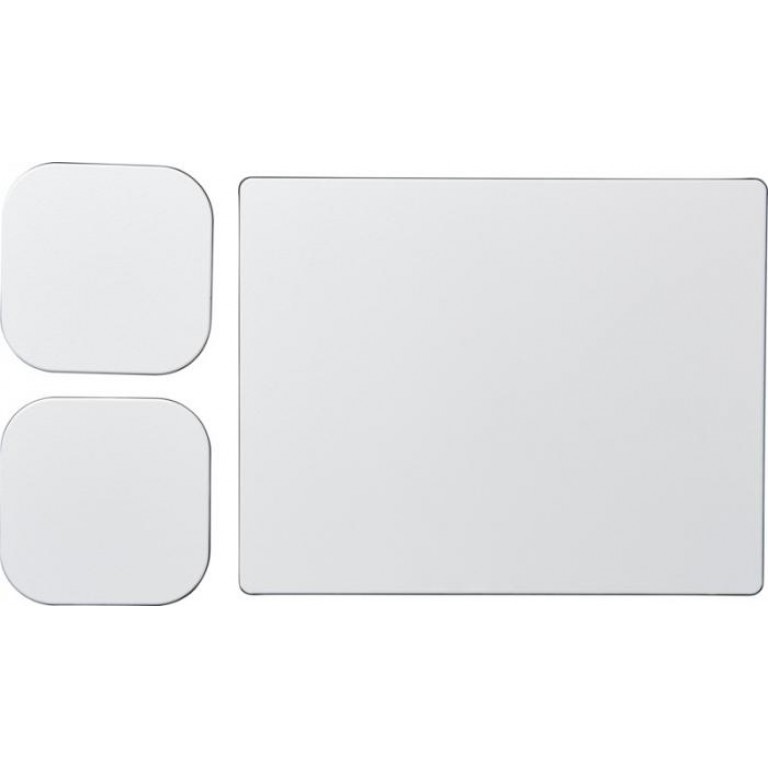Supplied with a Brite-Mat mouse mat and a set of matching coasters. The set comprises of a rectangular mousemat (0.3 x 19 x 21cm), square coaster (0.3 x 9.5 x 9.5 cm) and round coaster ( 0.3 x  ø9.5cm). Laminated paper, Recycled paper.