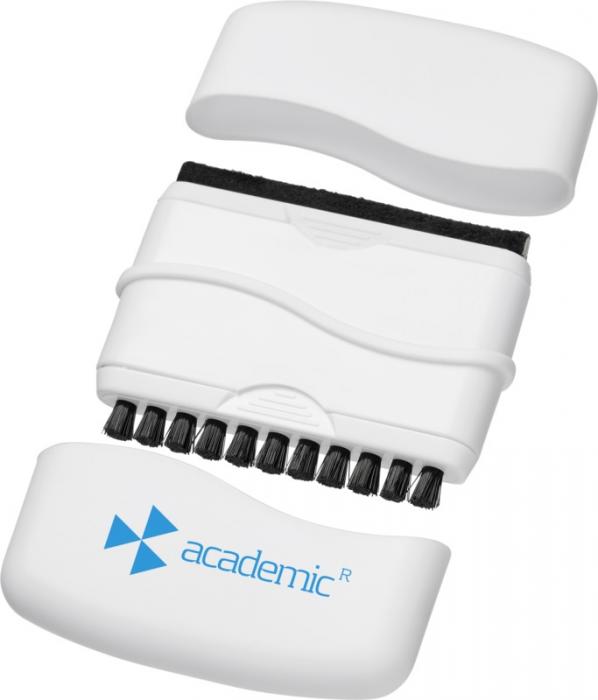 A must-have item for keeping desktops clean. One side features a screen wipe and the opposite side features a keyboard brush. PP Plastic.