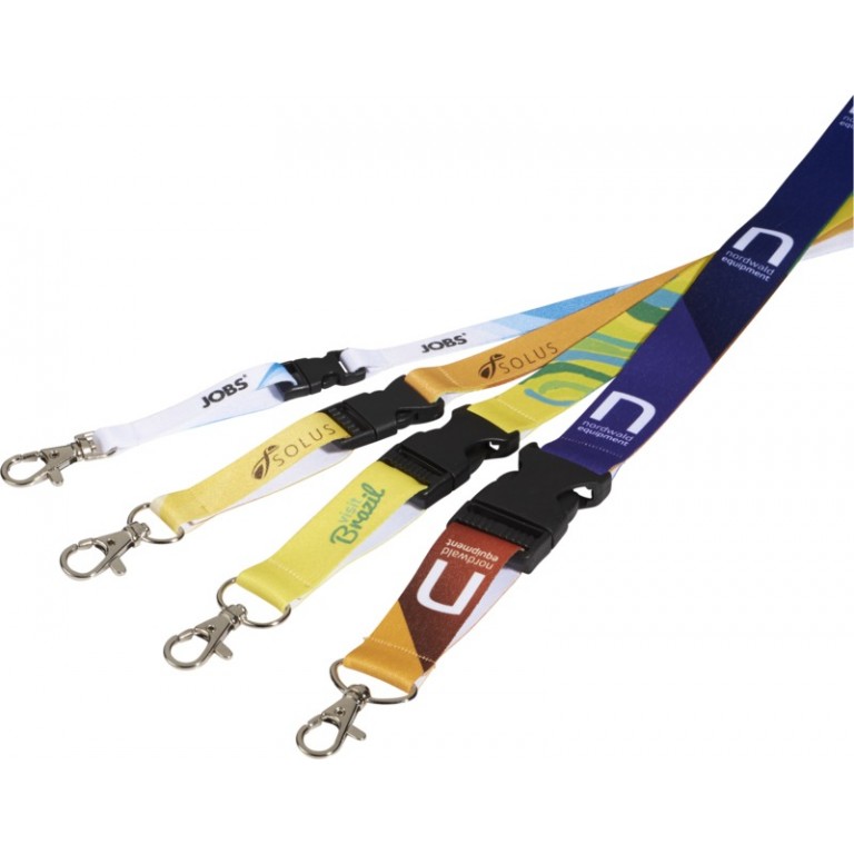 Lana full colour lanyard -double side. Full colour design sublimation lanyard. This lanyard is including full colour decoration on two sides. Lanyard includes a metal hook. Can hold a name badge, ID card or keys. Available in 4 different side widths: 10, 15, 20 and 25 mm. Satin Polyester. Polyester.