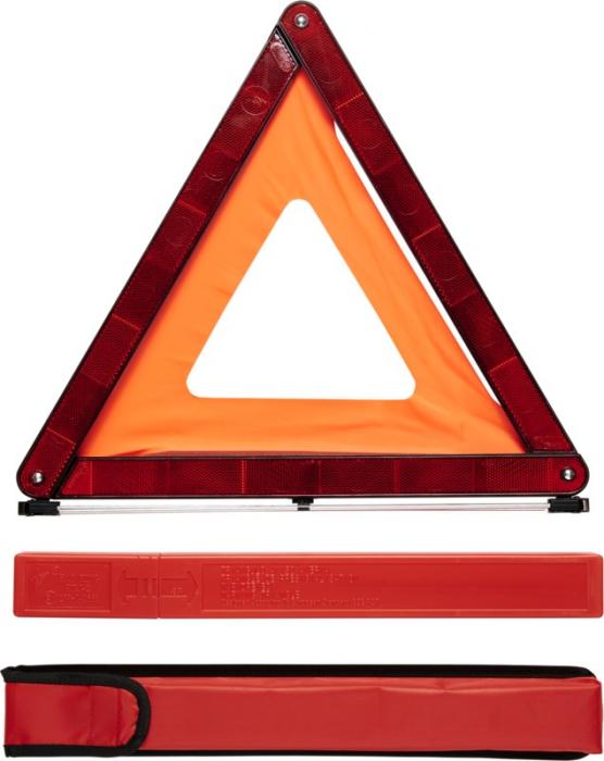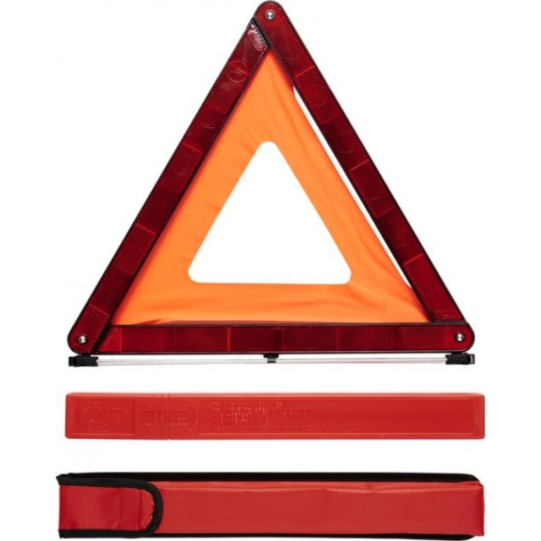 The warning triangle is regulated according to the European Standard EC R27. It comes in a plastic case and a polyester pouch with hook & loop on the back to keep it in its place during driving. Always place it at 5° to the left of the vertical plane. The warning triangle is recommended to be placed 50-100 meters behind the troubled vehicle on an ordinary road, and 100-200 meters behind the troubled vehicle on a highway. Approval No: 27R-043555. ABS Plastic.