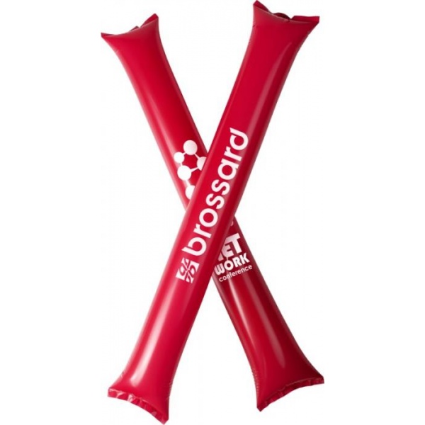 Cheer 2-piece inflatable cheering sticks. 2-piece inflatable cheering sticks, including plastic straw to fill them with air. An ideal and reusable product to support your team. Each stick has a size of 60×10 cm with a large decoration area. Striking item for creating a good atmosphere. PE Plastic.