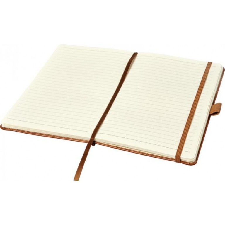 A5 size soft cover PU leather notebook with matching colour elastic closure and ribbon marker. Available in the following colours: Black, Brown, Navy. 80 gsm, 96 sheets of cream coloured lined paper. Packed in a sleeve. PU Plastic.