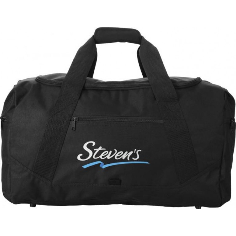 Travel bag also suitable for sports, with a main zippered compartment and 2 side zippered pockets. 600D of Polyester, 300D of Polyester.