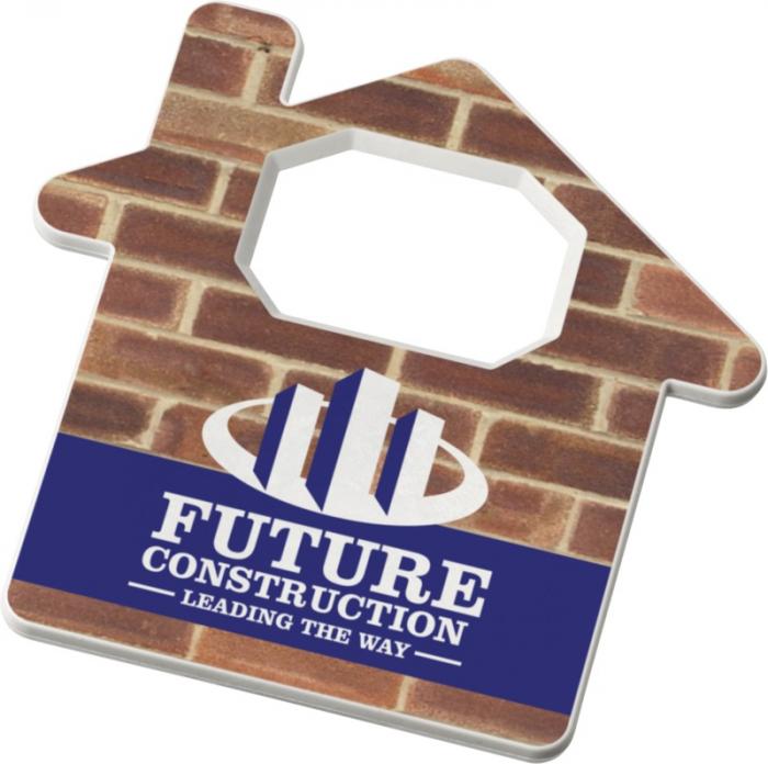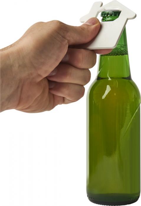 House-shaped bottle opener for drinks such as soda bottles and beers. GPPS Plastic.