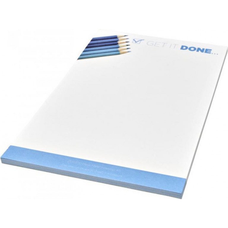 Desk-Mate® A5 notepad. White A5 Desk-Mate® notepad. Includes blank paper sheets of 80g/m2. Standard delivered with 50 sheets, also available with 25 or 100 sheets. Decoration possible on each sheet. Sheets dimension: 148x210mm. Paper, cardboard.