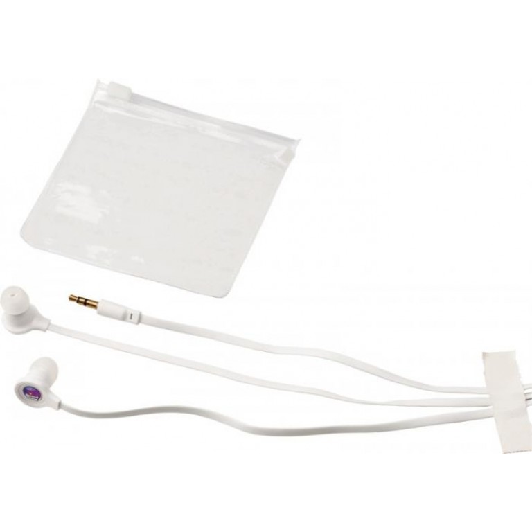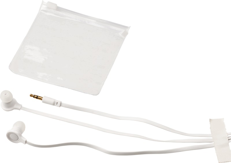 Dish earbuds with clear plastic pouch