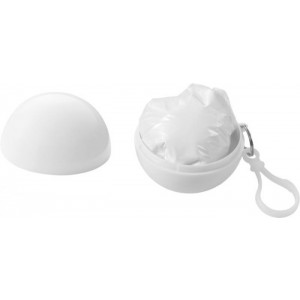 Xina rain poncho in storage football with keychain. One-size-fits-all hooded poncho (90×120 cm.) for unexpected downpours. Conveniently compact container with football print hooks onto a keychain, fits into a small pocket and is a great add-on to any bag or drinkware piece. Decoration on container only. PS Plastic.
