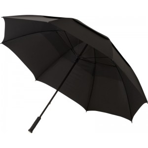 30” vented umbrella with a windproof system for maximum frame flexibility in stormy conditions. Equipped with fibreglass and ribs. The overlapping ventilation cover construction regulates the pressure in strong gusts. Includes carry case with shoulder strap. Pongee Polyester.
