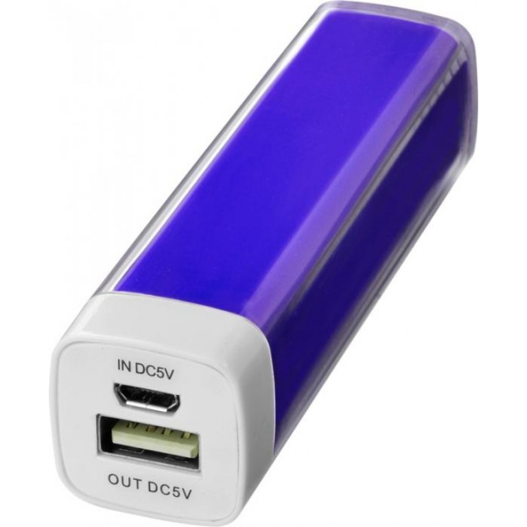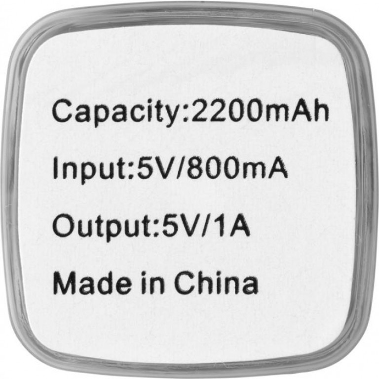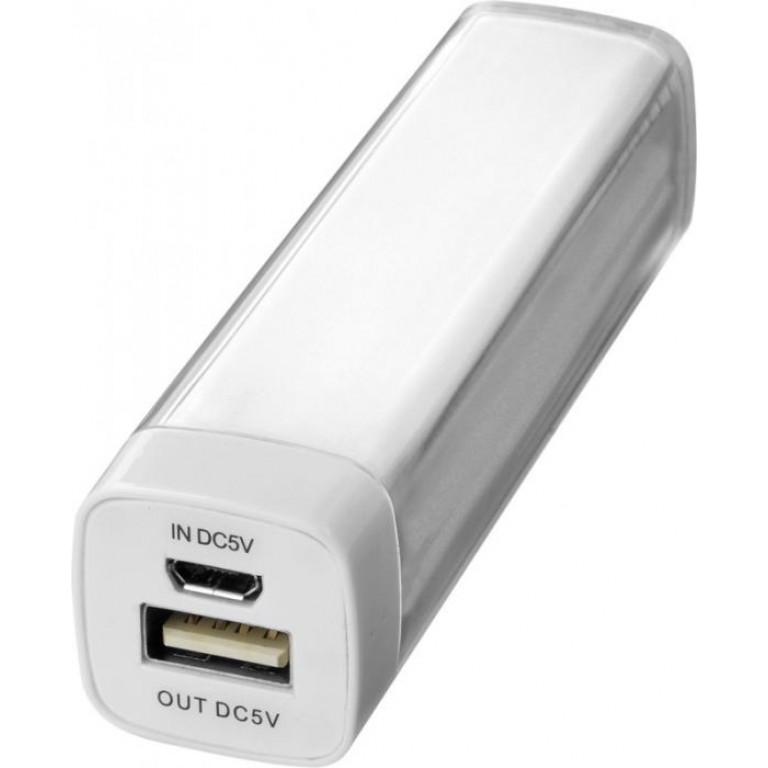 Flash 2200 mAh power bank. The 2200 mAh battery capacity provides enough power to charge a mobile device. Power bank charges in 2 hours with included USB cable and turns red when charging, off when charged or blue when fully discharged. Includes white carton box. ABS Plastic, PC Plastic. ABS Plastic, PC Plastic.
