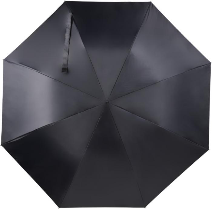 Argon 30″ foldable auto open umbrella. 30” two-section umbrella with automatic opening. Large pongee canopy with metal shaft and fibreglass ribs. Includes a storage pouch with shoulder strap for easy carrying. Foam handle with wrist strap for comfort. Pongee polyester.