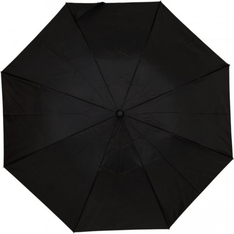 Exclusive design automatic open and close 3-section umbrella. Metal black shaft, fiberglass ribs and rubber coated plastic handle. Supplied with matching canopy colour pouch. Folds up to 31cm. Pongee Polyester.