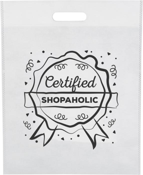 Open main compartment. Die-cut handle. Heat-sealed construction with slim design. Reusable and a great alternative to plastic bags or for tradeshows and conventions. PP Plastic non woven, 80 g/m2.
