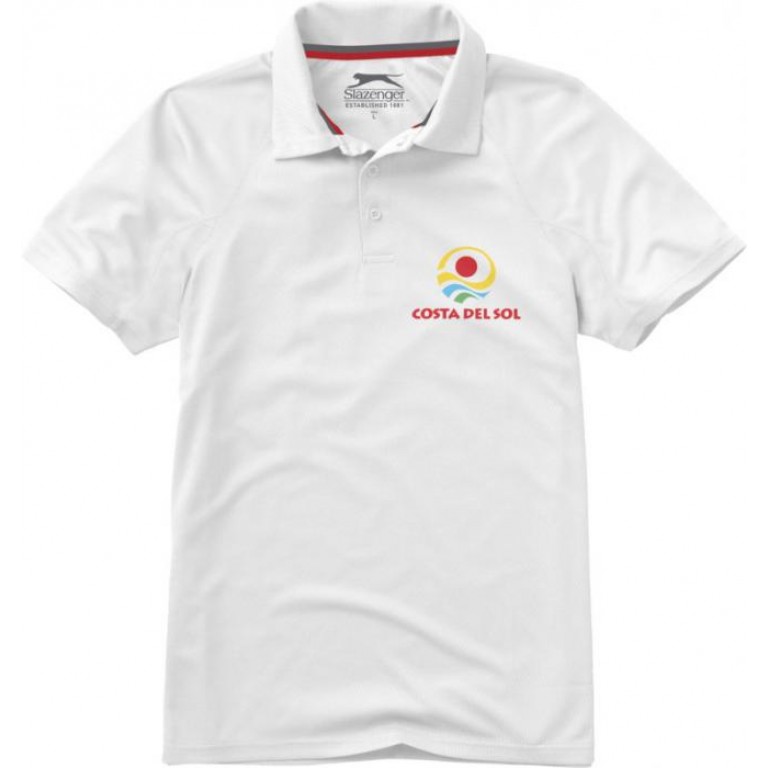 Game short sleeve men’s cool fit polo. Self fabric collar.Raglan sleeves.Three button placket. Flatlock stitching details.Bi-coloured necktape. Dyed-to-match engraved buttons.Heat transfer main label for tagless comfort. Mesh of 100% Polyester with Cool Fit finish. 125 g/m².