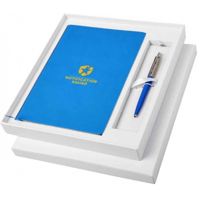 Gift box including an exclusive design Parker notebook with 96 lined sheets (80gsm cream paper) and ribbon marker. Pen not included. Can be combined with all Parker pens, and in particular the new Parker Originals range. Cardboard.
