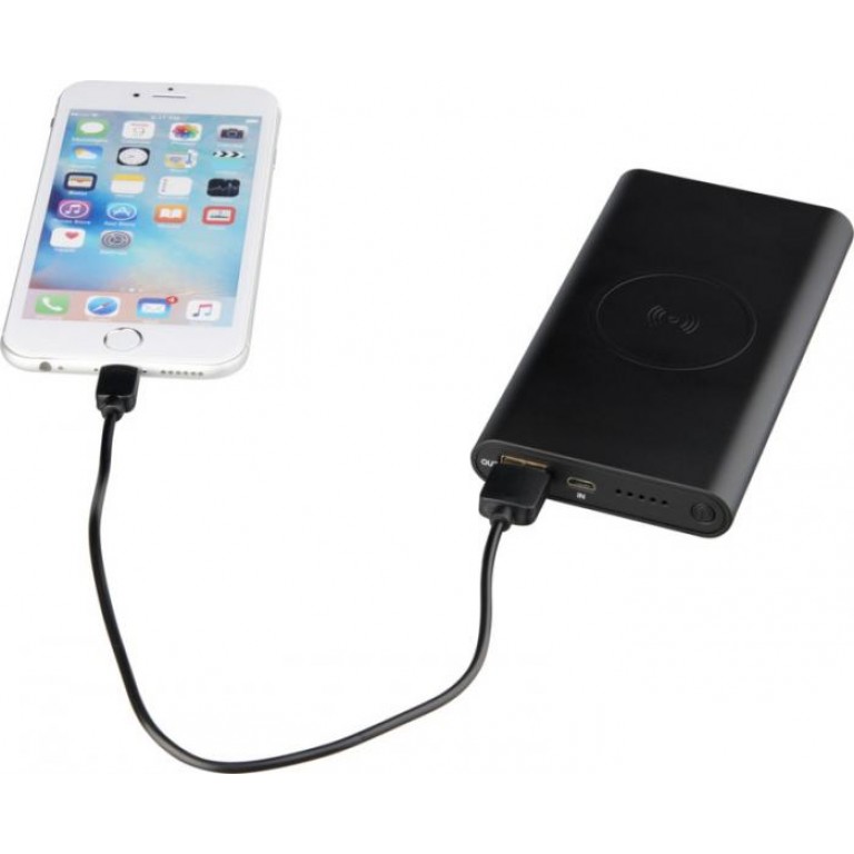 The Glisten 4000 mAh light-up wireless power bank has a rechargeable lithium polymer battery which could work as a charging pad or a regular power bank on-the-go. Outputs: 5V/2A. Supports wireless charging at up to 1A for devices that have wireless charging functionality. In order to charge iPhone series before iPhone 8 with wireless technology, an external wireless charging receiver or receiver case is required. This device will work with any smartphone or tablet that does not have wireless technology through the normal power bank capabilities. Includes a 2-in-1 charging cable that is compatible for any device with micro port, as well as any iOS phone. It works with most plastic phone cases on. Logo will light up while charging. This item must be lasered to reveal the light-up function. ABS Plastic.