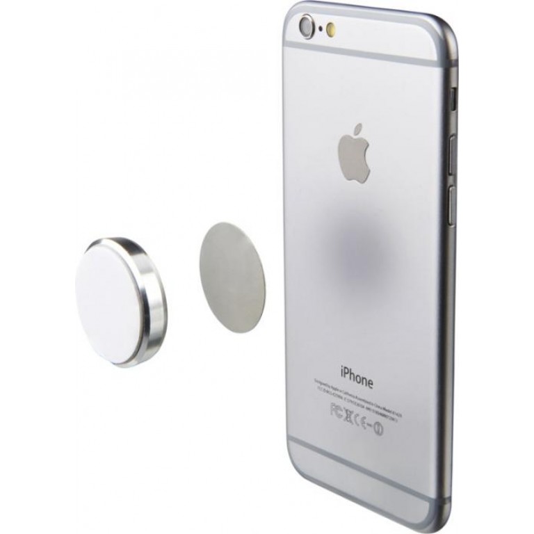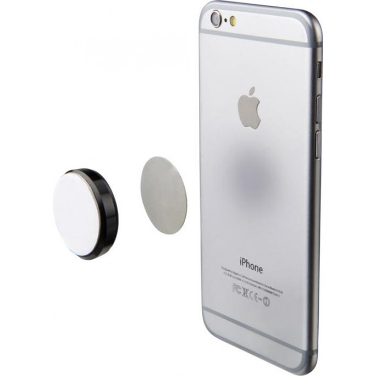 This magnetic pad is a great hands-free mounting solution for smartphones and devices of all sorts. Just place the pad on your preferred spot and apply the magnetic plate to your device. PVC.