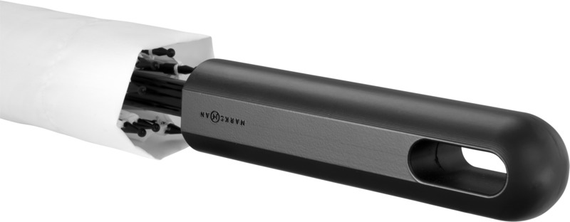 Neki 23.5″ square-shaped auto open umbrella. Square umbrella with metal frame, metal ribs and plastic handles. Polyester.