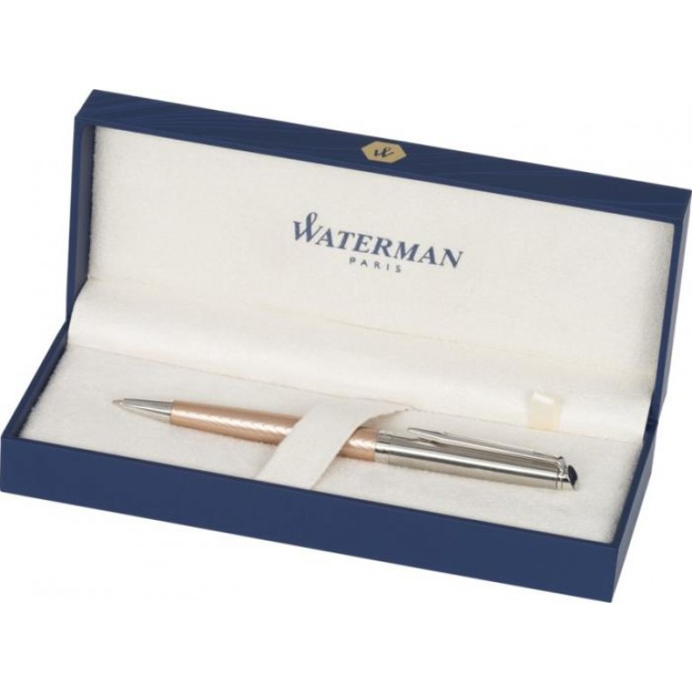 New premium Hémisphère collection with flowing laser patterns that respect the beautiful shape of the pens and resonate beautifully to trends on natural/ organic elements. Available in ballpoint pen, rollerball and fountain pen and in 3 colours/designs: A vibrant blue lacquer finish complete with intricate signature pattern etched onto the cap, a sophisticated rose finish with a subtlety etched pattern and an unpredictable and intricate pattern together with palladium plated trims. Packed in a Waterman gift box. Metal.