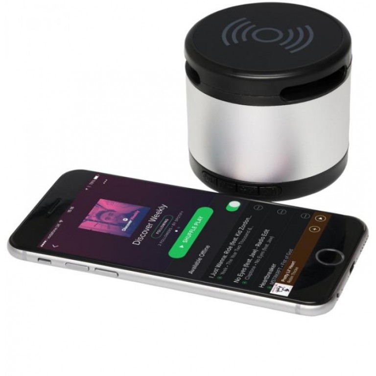 Jones metal Bluetooth® speaker with wireless charging pad
