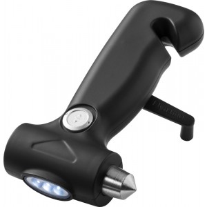 Node 3-in-1 emergency car tool. Three-in-one emergency safety tool includes hammer to break through glass, seatbelt cutter and dynamo flashlight. Crank handle to generate power. No external batteries needed. Rubber design handle for easy gripping. Packed in a STAC gift box. Build-in rechargable battery. Exclusive design. ABS Plastic. ABS Plastic.