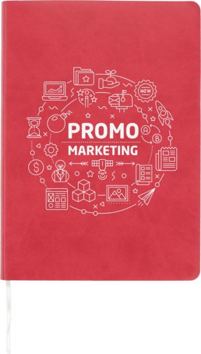 Soft-feel notebook. The Soft Feel Notebook has a smooth hardback cover and contains 80 sheets of white paper. The matching coloured elasticated strap keeps the book closed when not in use. Paper, PVC Plastic.
