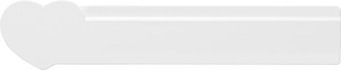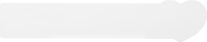 Heart-shaped solid plastic ruler with both markings in inches and centimetres. GPPS Plastic.